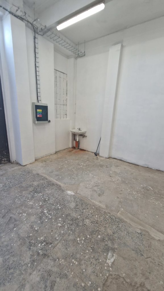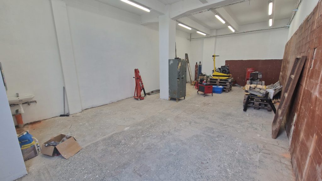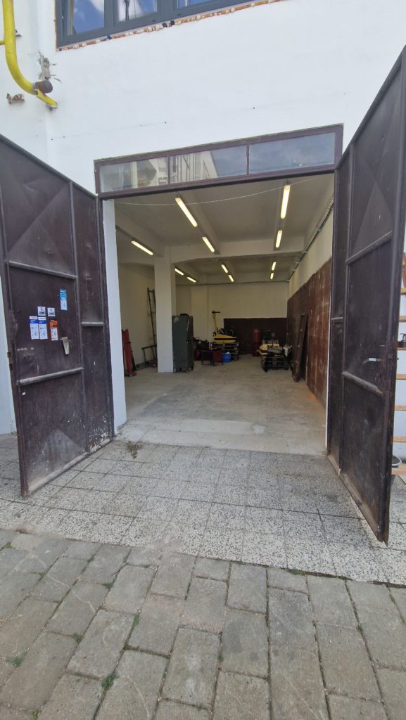 Vchod případně vjezd železnými vraty 2,9m x 3,6m. Vhodné i pro hlučnější výrobu. Je možné vysoké zatížení betonové podlahy. V prostoru je k dispozici rozvod napětí 230/400V, osvětlení, zásuvky, voda, odpad, internet.